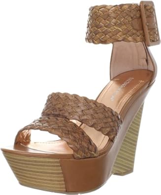 This Candiss from BCBGeneration is a stylish ankle strap sandal with a high woven wedge heel.Distinctive in design, the generous platform wedge adds stability to the sky-high stacked heel. Woven leather straps add an element of texture, and the ankle features an adjustable strap as well as a back zip for easy wearing. The smooth lining with cushioning insole and Rubber traction outsole makes this wedge sandal very comfortable to wear.