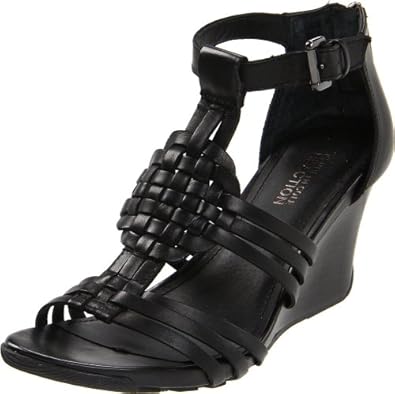 Equally at home with a pair of crisp trousers or a sassy skirt, Kenneth Cole REACTION Women's Cedar wedge is your go-to shoe for the summer. T-strap styling boasts a basket weave design for added texture, and the adjustable wide ankle strap supports your foot in stylish comfort. A stacked wedge and covered platform display tanned summer gams with ease.